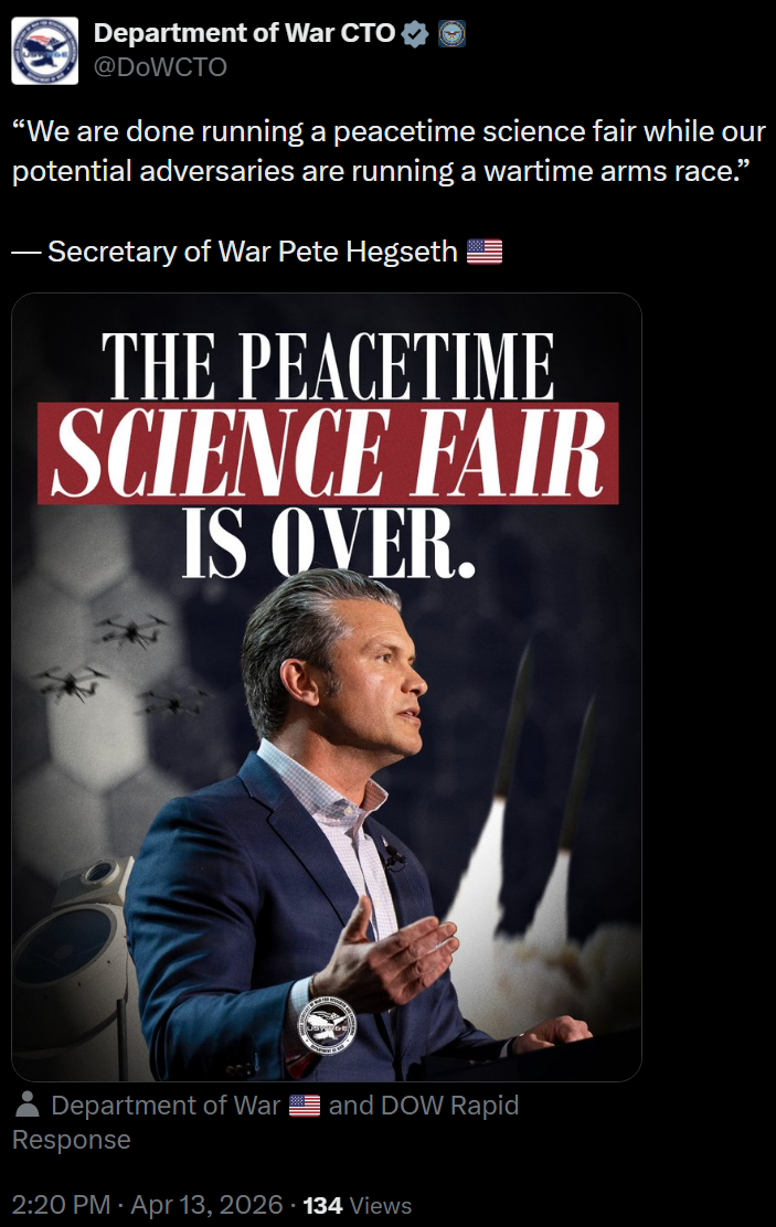 [027]“We are done running a peacetime science fair while our potential adversaries are running a wartime arms race.” — Secretary of War Pete Hegseth 🇺🇸 media link media link