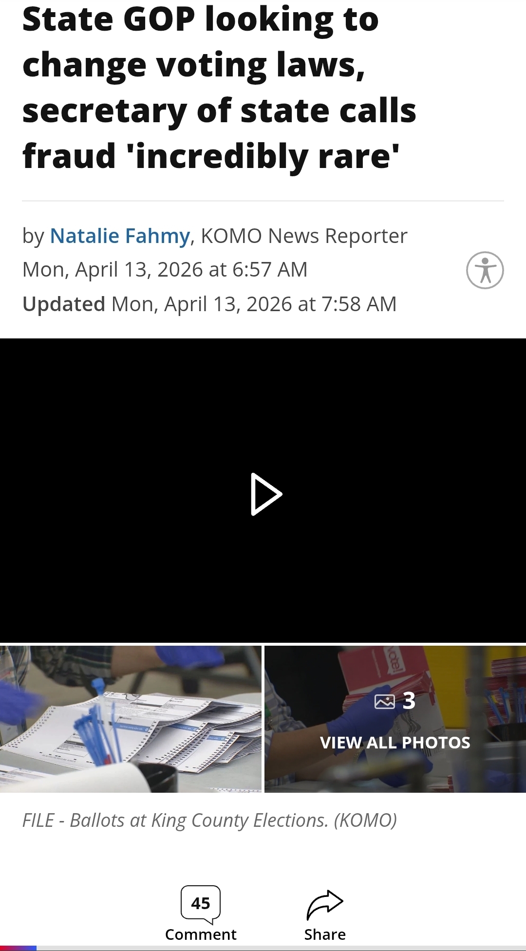 [006]Washington State GOP looking to change voting laws, secretary of state calls fraud 'incredibly rare' media link