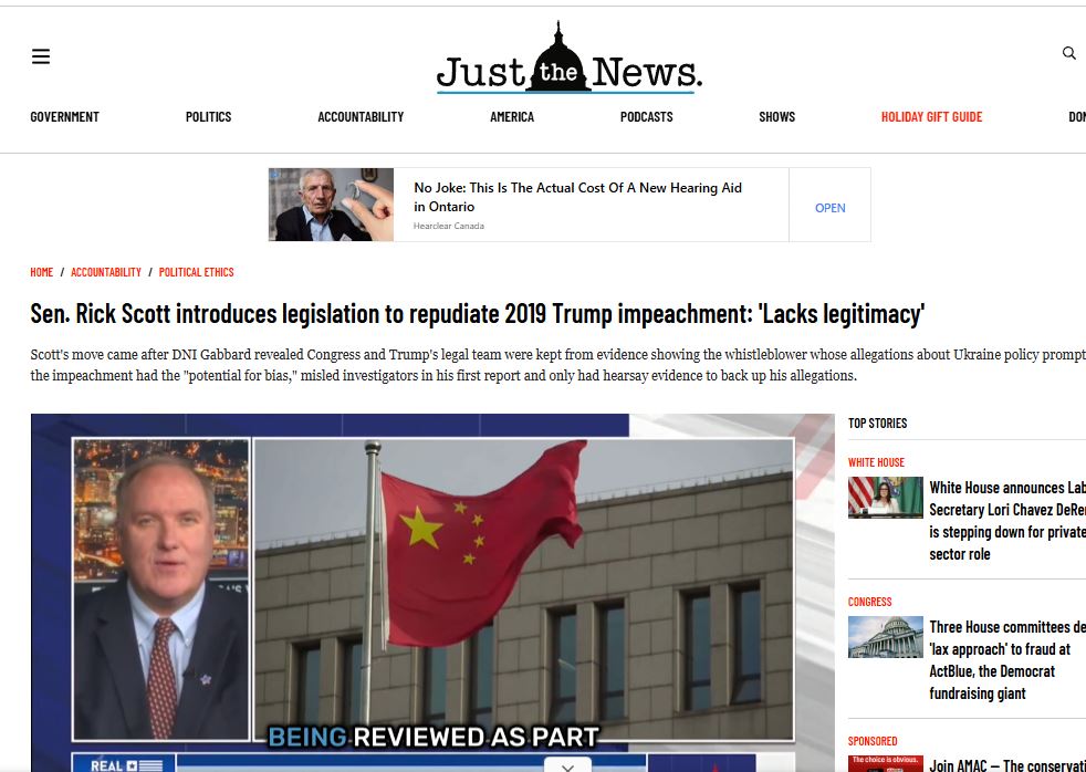 [042]Sen. Rick Scott introduces legislation to repudiate 2019 Trump impeachment: 'Lacks legitimacy' media link