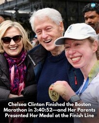 [059]Chelsea Clinton finished the Boston Marathon, parents award her a shiny golden finisher medal [finished] media link media link media link media link media link media link