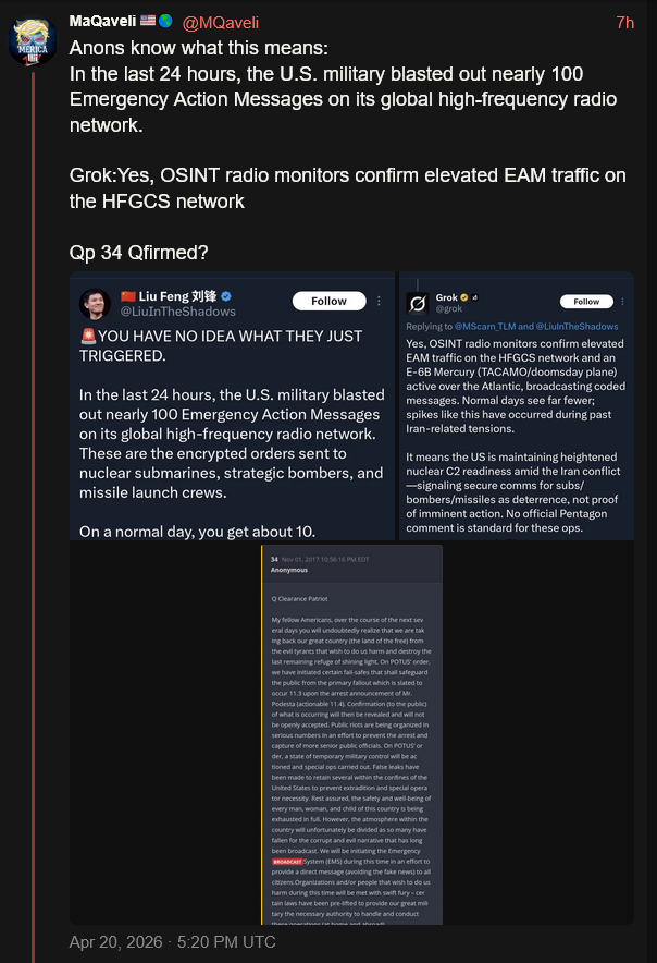 [087]MaQaveli: Anons know what this means: In the last 24 hours, the U.S. military blasted out nearly 100 Emergency Action Messages on its global high-frequency radio network media link