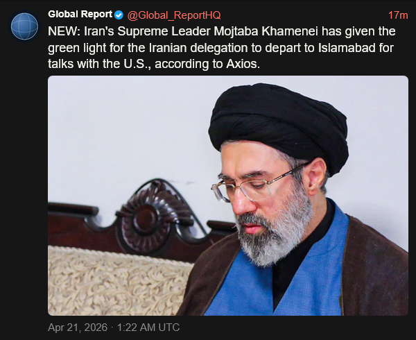 [091]Khamenei has given the green light for the delegation to depart to Islamabad for talks with the U.S/JD Vance heads to Pakistan TUESDAY media link media link media link media link
