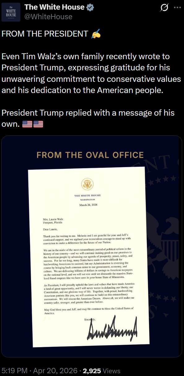 [034]Tim Walz’s own family recently wrote to President Trump expressing gratitude... and POTUS replied media link media link