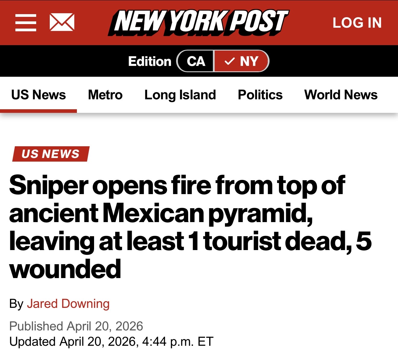 [027]Sniper opens fire from top of ancient Mexican pyramid, leaving at least 1 tourist dead, 5 wounded media link media link media link