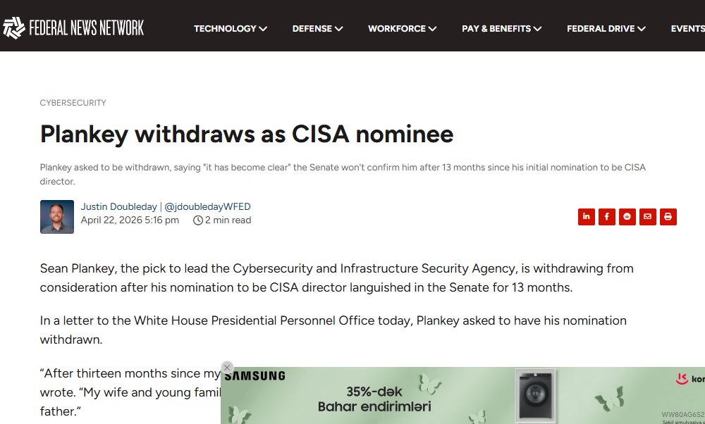 [013]Sean Plankey withdraws as CISA nominee, after nomination languished in the Senate for 13 months media link