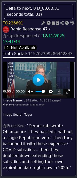 [067]@PressSec: "Democrats wrote Obamacare. They passed it without a single Republican vote." media link