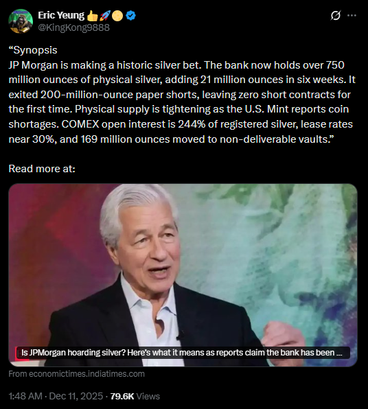 [104]ICYMI: 🚨⚡️🔥JPMORGAN SELLS ENTIRE 200 MILLION OZ SILVER SHORT POSITION, FLIPS LONG 750 MILLION OZ!!! 🔥🔥🔥