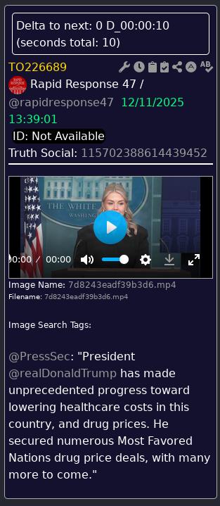 [065]@PressSec: "President @realDonaldTrump has made unprecedented progress toward lowering healthcare costs in this country, and drug prices." media link