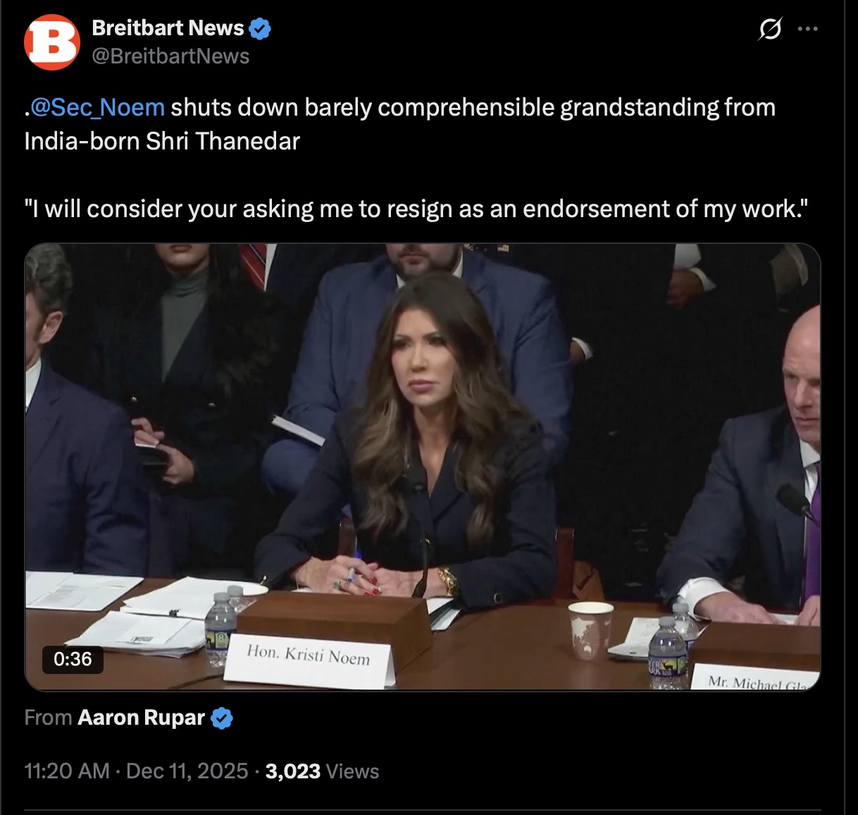 [034]Noem shuts down barely comprehensible grandstanding from India born Dem Shreee Thanedar media link media link