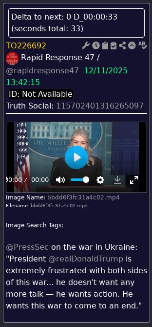 [069]@PressSec "President @realDonaldTrump is extremely frustrated with both sides of this war… he doesn't want any more talk — he wants action. [Ukraine] media link