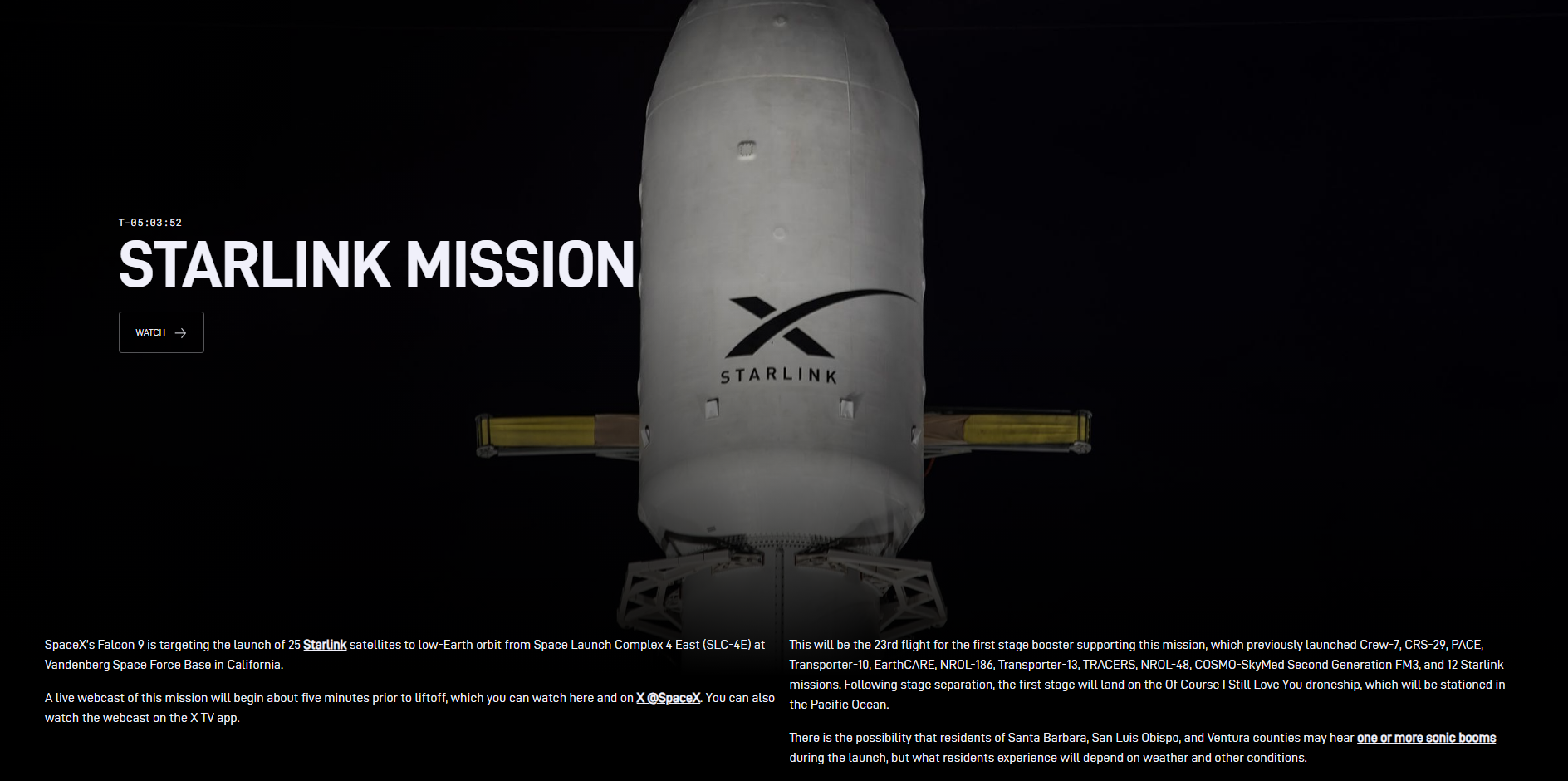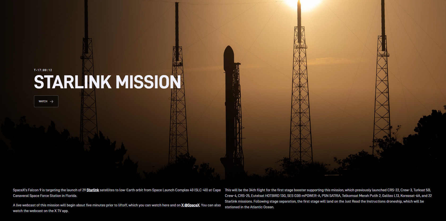 [017]Starlink Mission SpaceX’s Falcon 9 is targeting the launch of 25 Starlink satellites to low-Earth orbit media link media link