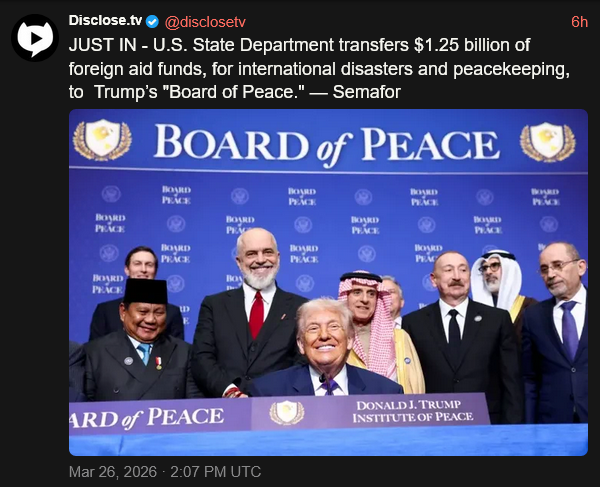 [053]JUST IN - U.S. State Department transfers $1.25 billion of foreign aid funds, for international disasters and peacekeeping, to Trump’s "Board of Peace" media link