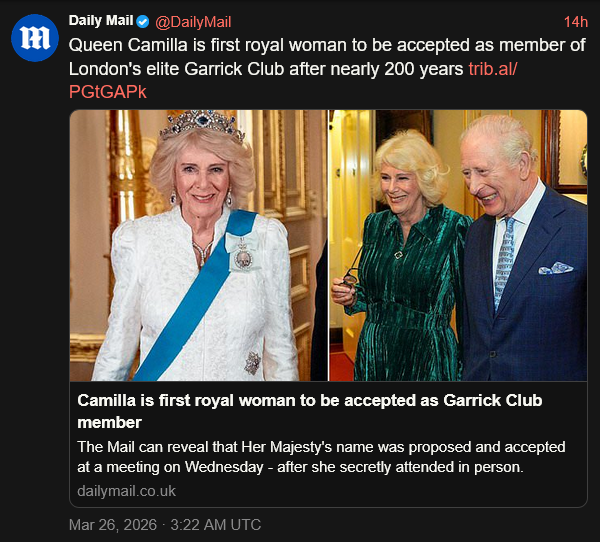 [013]Queen Camilla is first royal woman to be accepted as member of London's elite Garrick Club media link media link