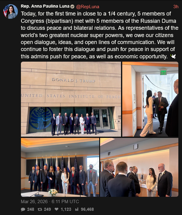 [070]Today 5 members of Congress (bipartisan) met with 5 members of the Russian Duma to discuss peace and bilateral relations media link