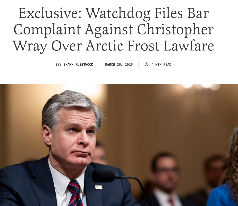 [105]Federalist: Warchdog Files Bar Complaint Against Christopher Wray Over Arctic Front Lawfare media link