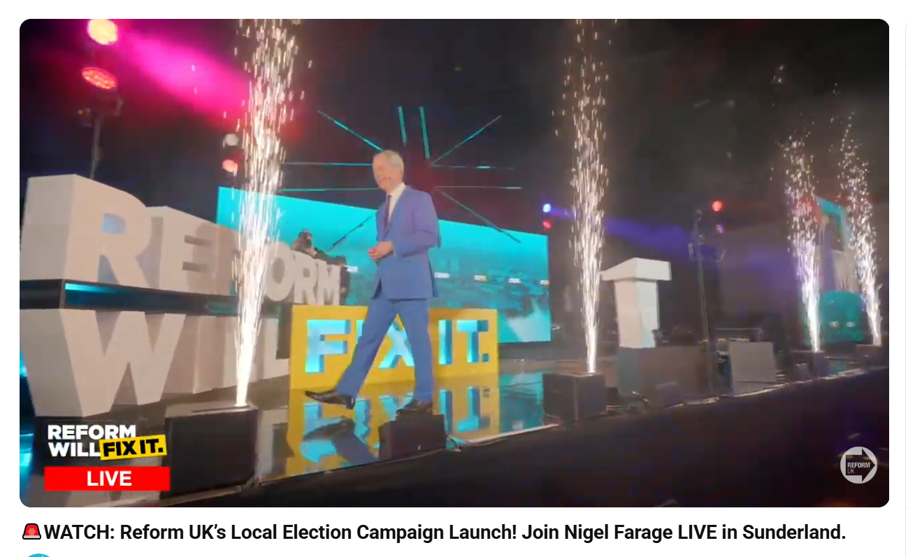 [042]WATCH: Reform UK’s Local Election Campaign Launch! Join Nigel Farage LIVE in Sunderland media link media link media link media link