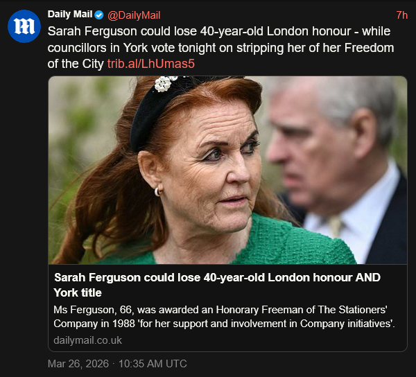 [019]Sarah Ferguson could lose 40-year-old London honour - while councillors in York vote tonight media link