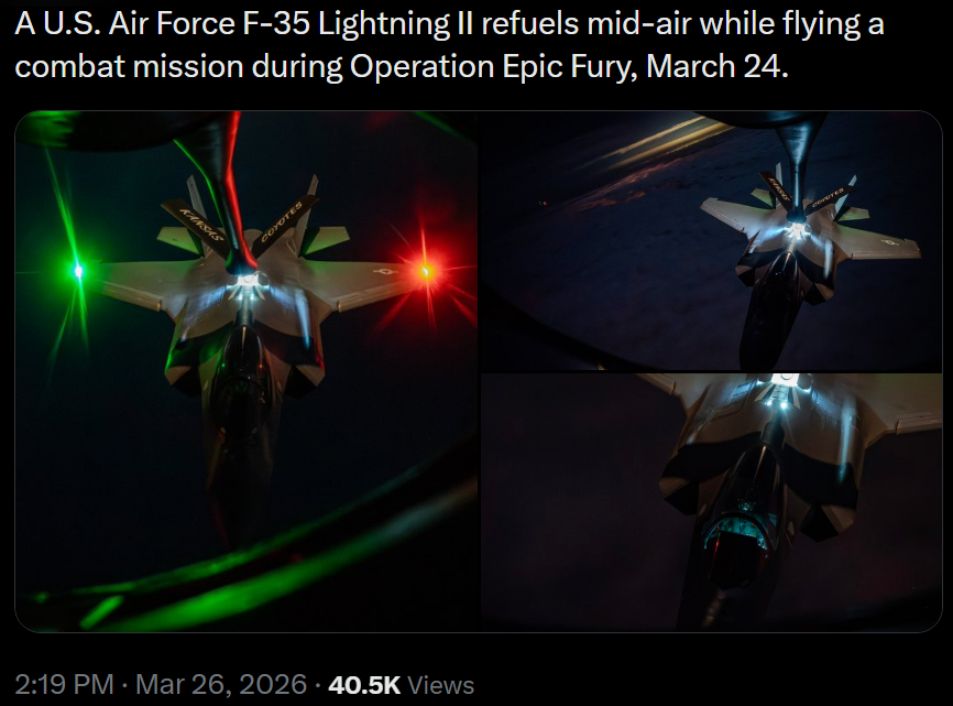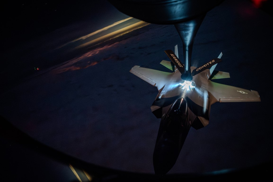 [034]@CENTCOM A U.S. Air Force F-35 Lightning II refuels mid-air while flying a combat mission media link media link media link media link media link media link media link media link media link