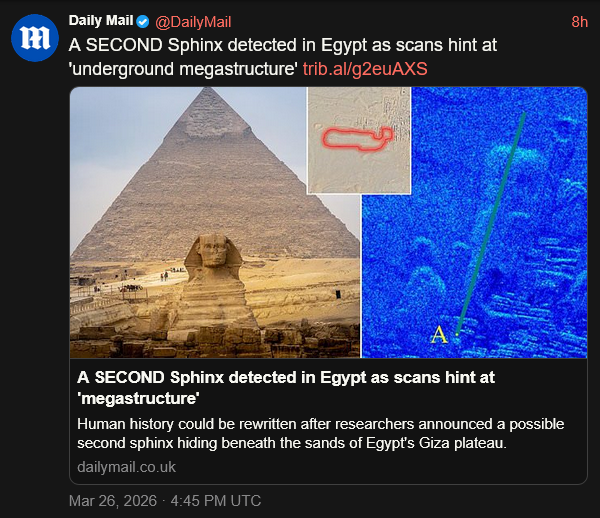 [099]A SECOND Sphinx detected in Egypt as scans hint at 'underground megastructure' media link media link