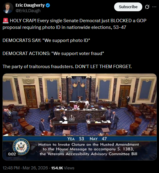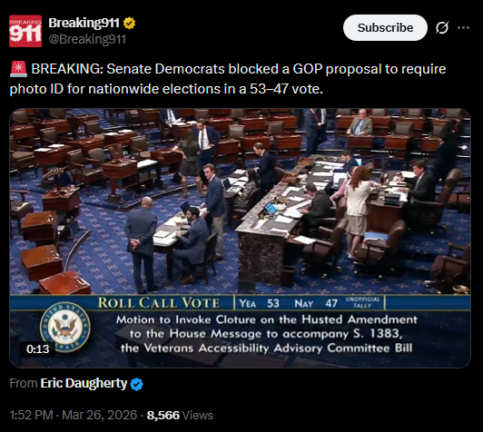 [038]🚨 BREAKING: Senate Democrats blocked a GOP proposal to require photo ID for nationwide elections in a 53–47 vote media link media link media link