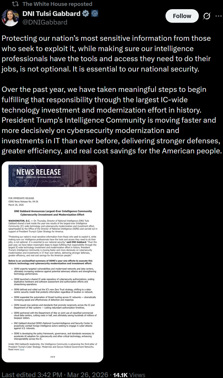 [046]@DNIGabbard Protecting our nation’s most sensitive information from those who seek to exploit it media link media link