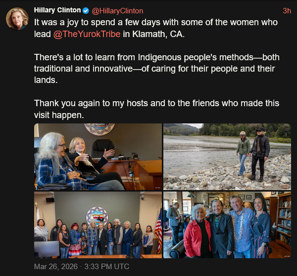 [033]@HillaryClinton It was a joy to spend a few days with some of the women who lead @TheYurokTribe in Klamath, CA media link